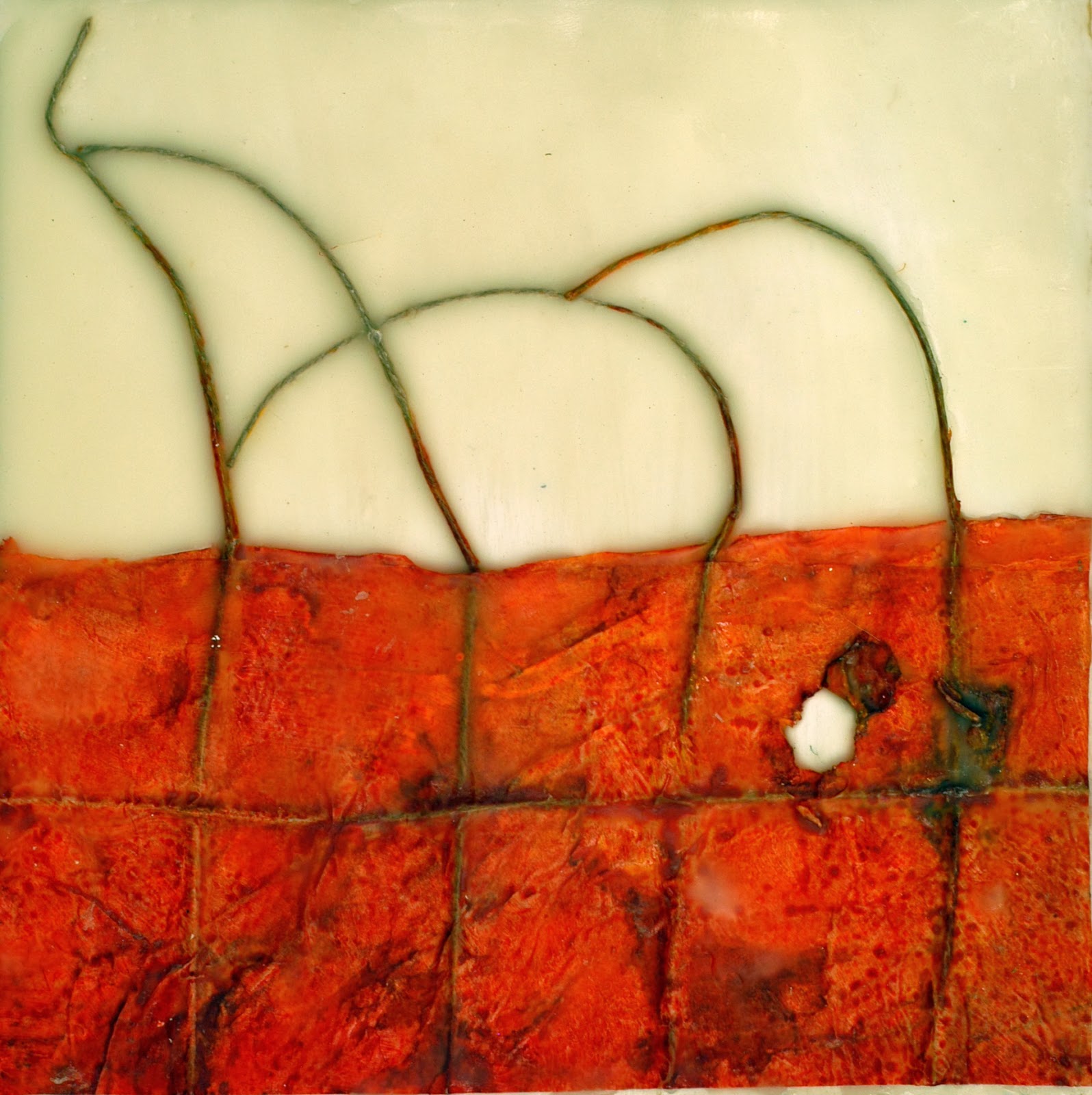 This is one of my favorites though it is very simple. It is 5x7 and is an encaustic monoprint. I need to do some more of these, as this was my only successful one!